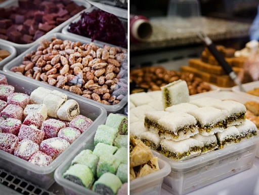 На мене највећи утисак остављају тезге са готовом храном, већином источњачка, турска… Посластице – бонбоне, карамеле, ратлук, баклаве, разне врсте сирева и деликатеса, пуњено поврће, салате свих боја… Ја сам се одмах залепила за тезге са зачинима. А зачини, ма само замислите… Само пажљиво у куповини истих, не залећите се на првим тезгама, касније можете да пронађете исто за мање новца.